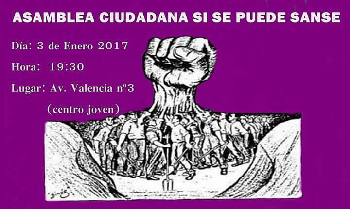 La Asamblea Ciudadana de Si Se Puede Sanse no hace interrupciones por las fiestas navideñas, y hoy mismo convoca a todos sus miembros y a cuantos vecinos y vecinas se quieran acercar, para abordar un orden del día que contempla tres asuntos.