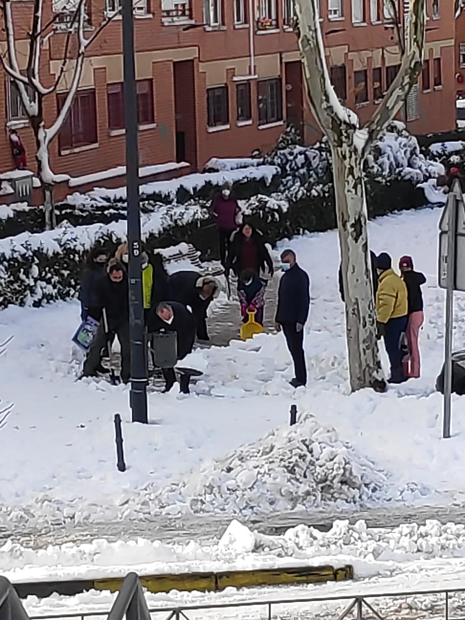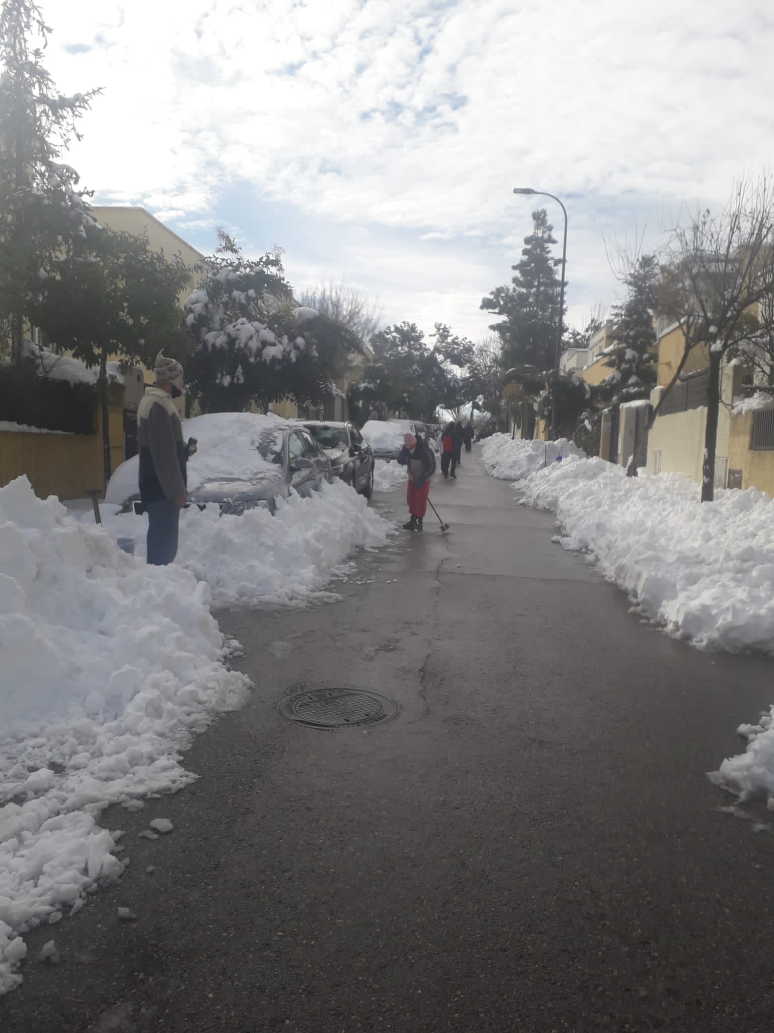Ayer anunciaban, miembros del gobierno local de San Sebastián de los Reyes, que el acceso al Polideportivo de la Dehesa Boyal y La Viña ya estaban despejados. Entretanto los vecinos y vecinas se encargan de limpiar aceras y calles por las que no han asomado ni máquinas quitanieves, ni retroescavadoras, ni empleados municipales, después de cuatro días.