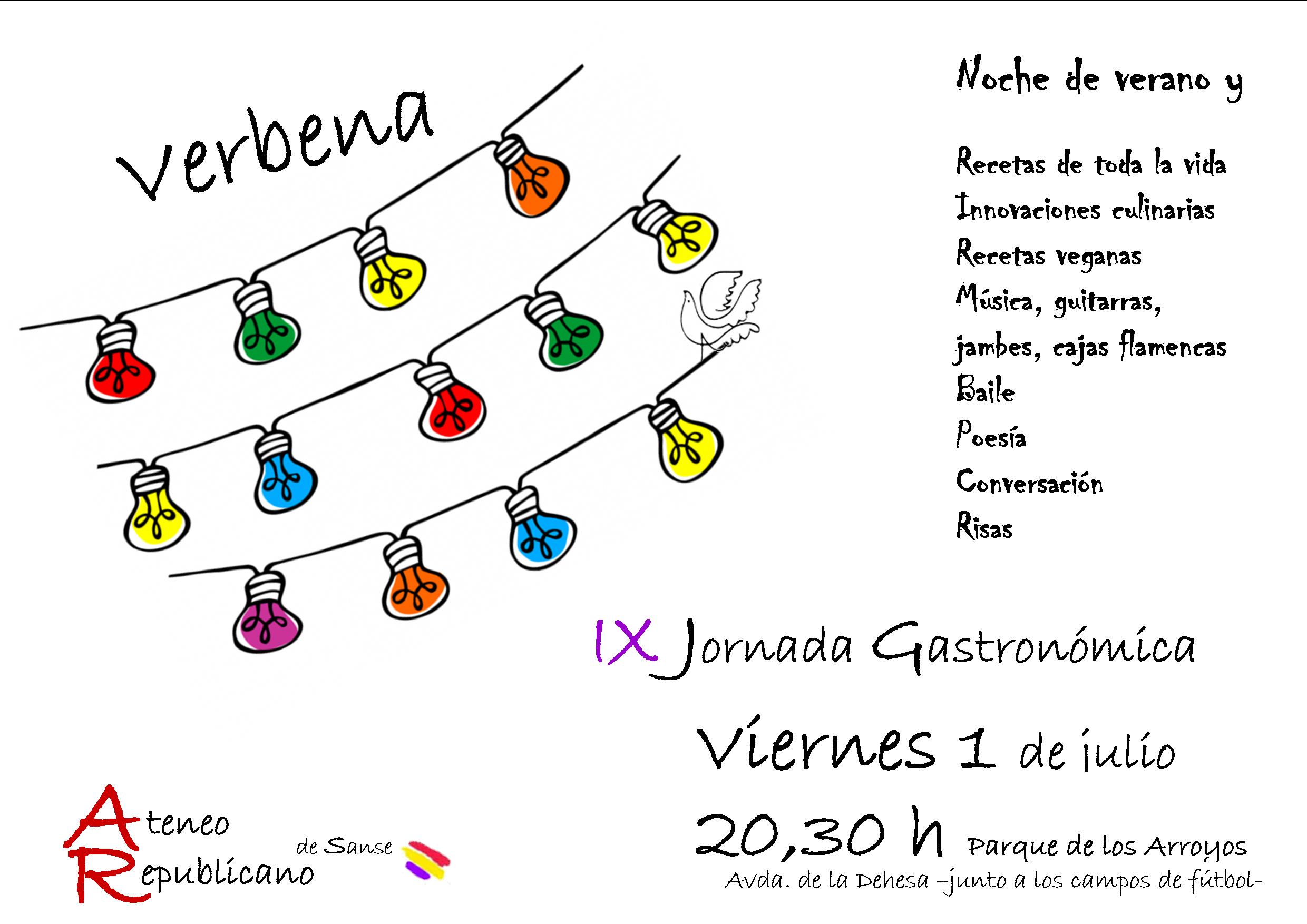 Hoy viernes 1 de julio a partir de las 20,30h, cuando empieza «la fresquita», en el Parque de los Arroyos ( en la confluencia entre la Avenida de la Dehesa y la Avenida de Portugal, junto a los campos de fútbol), se celebra la IX Jornada Gastronómica del Ateneo Republicano de Sanse.