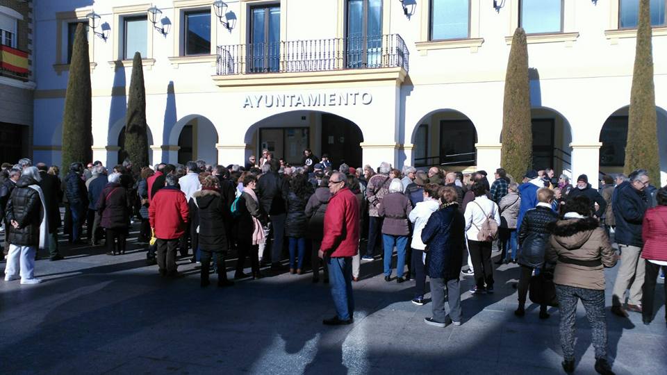 El lunes pasado cerca de dos centenares de personas se concentraton en la Plaza del Ayuntamiento de San Sebastian de los Reyes por una pensiones dignas. Esta convocatoria se realizó en múltiples ayuntamientos del país a la misma hora, las 12 de la mañana.