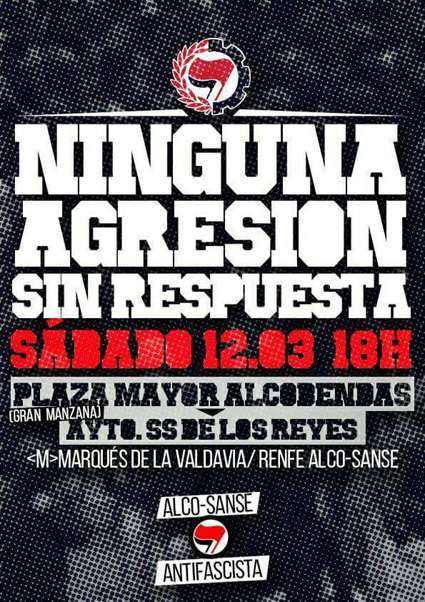 La Plataforma AlcoSanse Antifascista ha convocado una manifestación en respuesta a las agresiones nazis del pasado fin de semana en San Sebastián de los Reyes