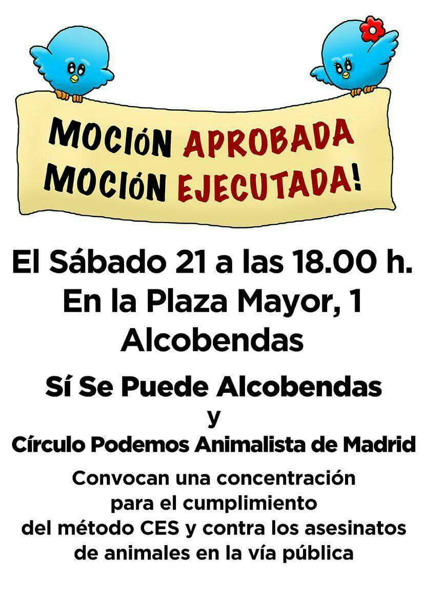 Si Se Puede Alcobendas y el Circulo Podemos Animalista de la Comunidad de Madrid convocan el próximo sábado 21 de enero una Concentración para el cumplimiento del método CES.