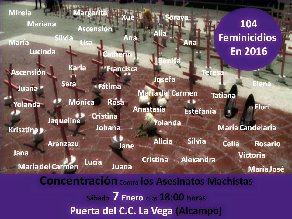 104 asesinatos machistas en 2016, y dos más en este recién estrenado 2017, que llevan al Movimiento por la Dignidad de la Mujer de SanSe y Alcobendas a convocar una nueva concentración de condena el sábado 7 de enero, a las 18h, en la puerta del Centro Comercial La Vega en el Arroyo de la Vega (Alcobendas).
