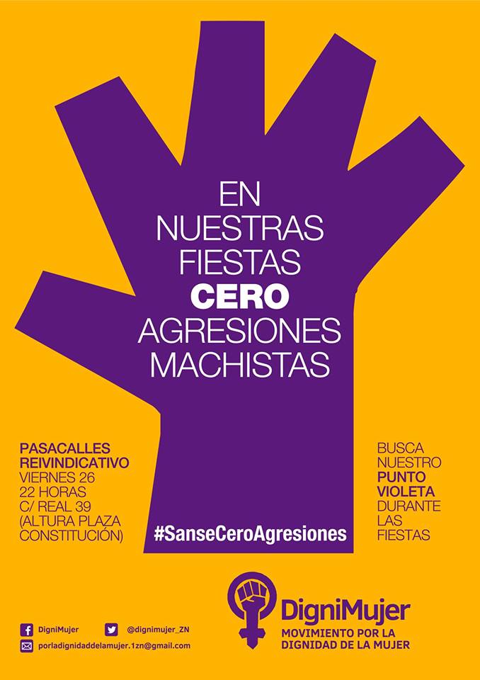 Al comienzo de las Fiestas de Sanse, el próximo viernes 26 de Agosto el movimiento por la Dignidad de la Mujer, DigniMujer, de Sanse y Alcobendas convocan un pasacalles bajo el lema «EN NUESTRAS FIESTAS CERO AGRESIONES MACHISTAS».