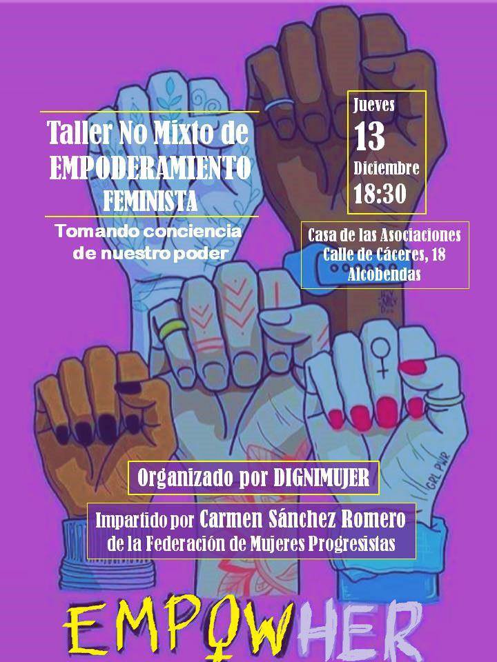 El Colectivo Dignimujer organiza el próximo jueves 13 de diciembre un Taller No Mixto de Empoderamiento Feminista.
