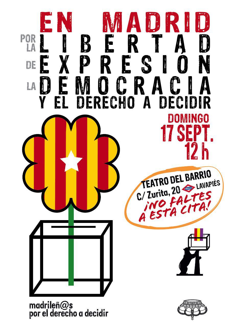 «Madrileños por el derecho a decidir» afirma que :«El acto del día 17 es una defensa de los cambios políticos que se necesitan para enfrentar al régimen del 78, esto no va de independencia sí o independencia no, sino de democracia sí o democracia no».